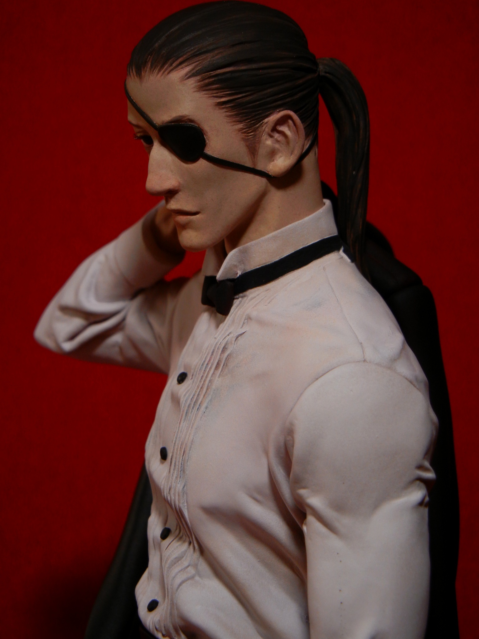 真島支配人半身像の製作の要所だけ記録したものです。 これが正しいやり方、という意味で記したものではなく、制作の様子を記録したものです。 キット制作のご参考程度になれば・・と思います。 今回特にいつもと違うところはありませんが、中空パーツの光透過防止のところなどが配慮して制作した点です。 軸打ちと隙間埋め(尸良の記事)や生え際の塗装(西谷胸像の記事)なども合わせて御覧にいただくといいかとおもいます。